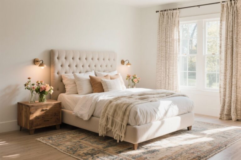 Ready to give your bedroom that warm, lived-in charm—without it feeling like a prop from a set? These cozy farmhouse bedroom ideas are all about layered textures, timeworn finishes, and comfort you can see from the doorway.