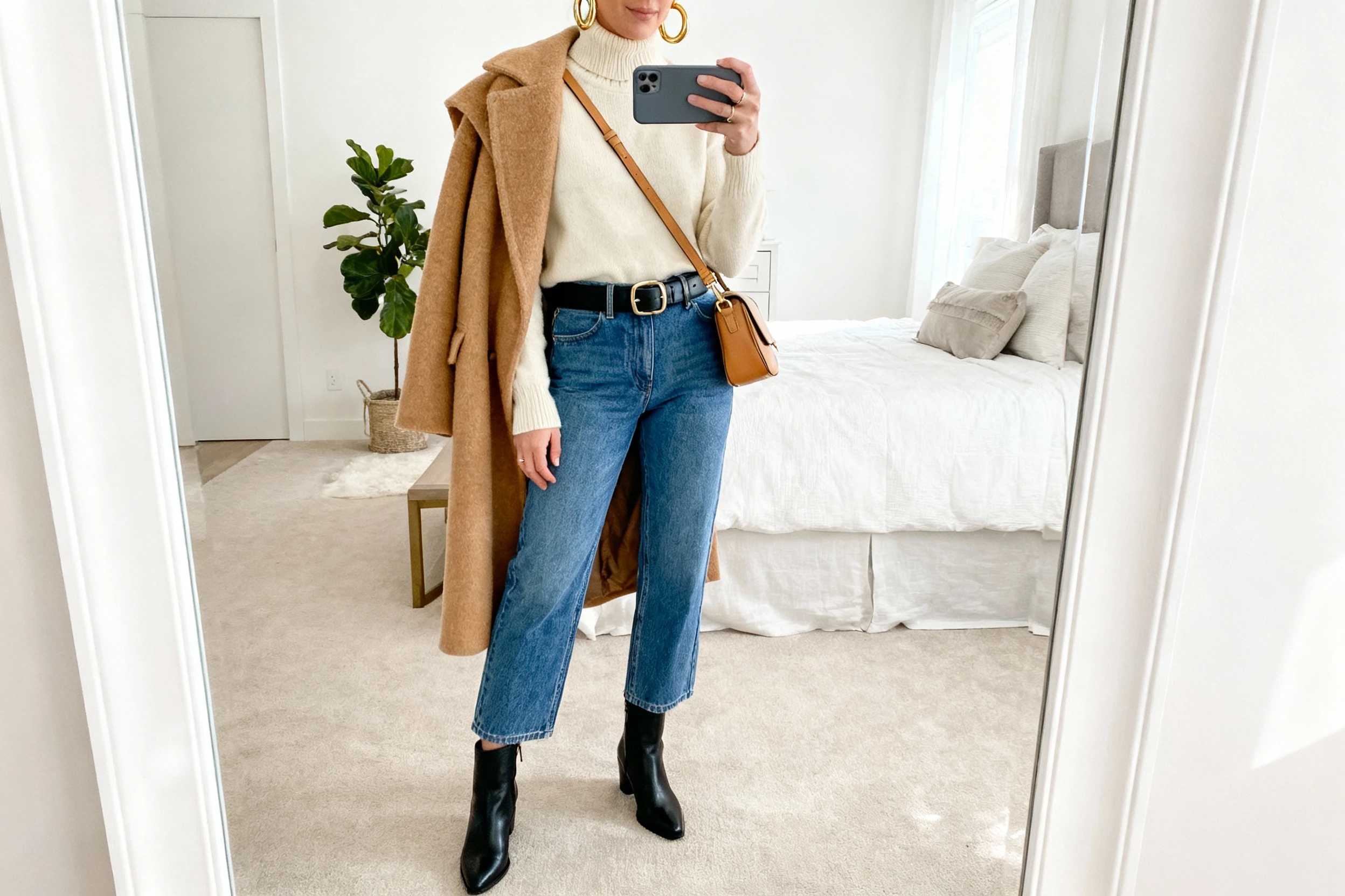- Try a tonal look—ecru jeans with a cream coat—for winter brightness.