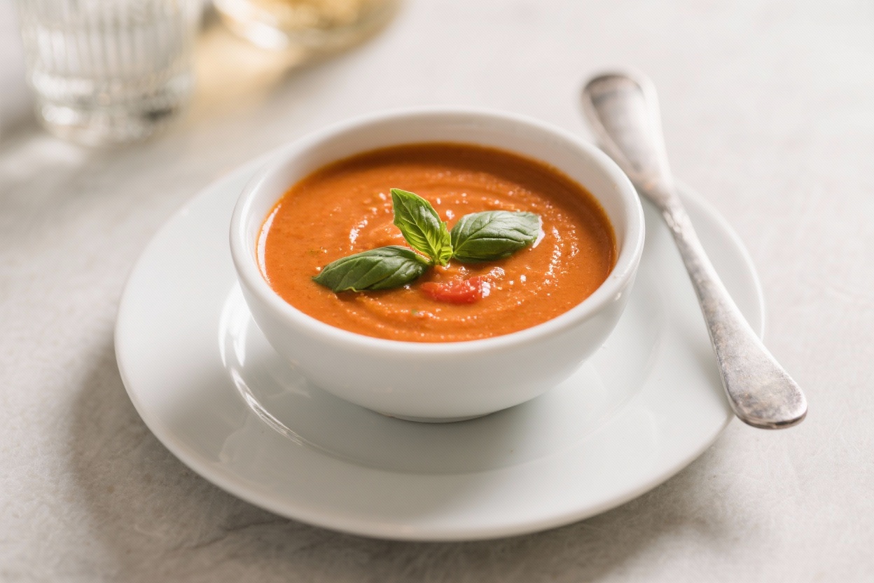 You’re working with quality canned tomatoes, sweet carrots, onion, and fresh basil—then finishing with cream for that signature restaurant-level silk. A controlled simmer coaxes sweetness from the tomatoes while reducing acidity. And finally, a thorough blend plus a quick sieve gives you that luscious, glossy finish.